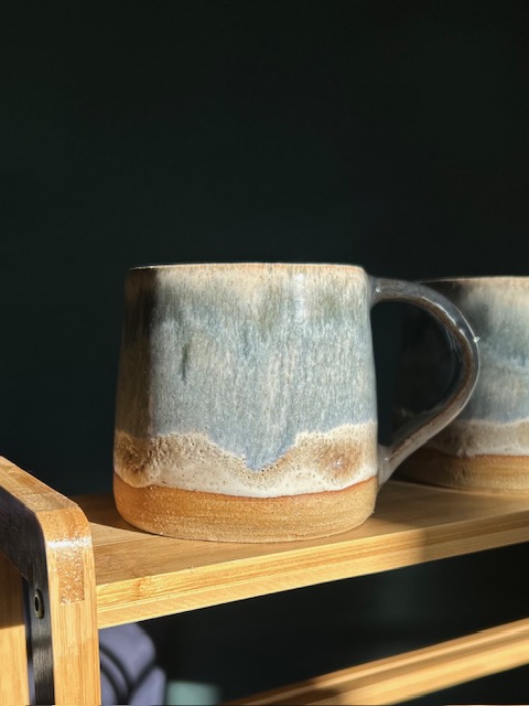 This specially glazed mug holds about 280/300mls, perfect for your morning coffee.