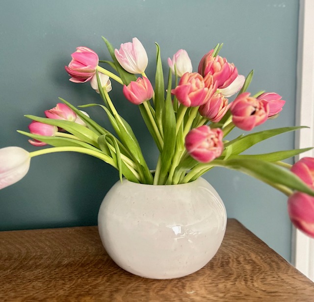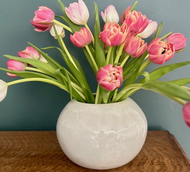 Wheel thrown stoneware vase, glazed in a striking white glaze. A statement piece for your blooms